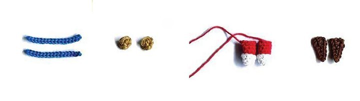 Ch 3, (starting from 3rd ch from hook) hdc [1] Fasten off and seal off the tails.