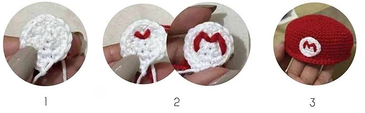 R11: 8sc, (change to beige) 2sc, (change to red) 8sc [18]