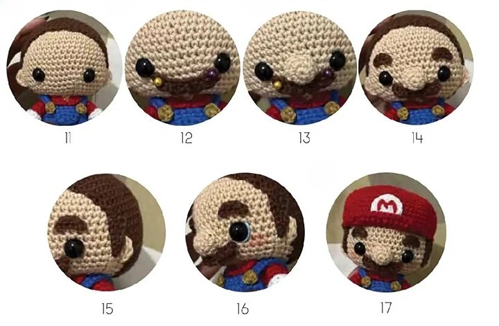 4) For the head, cap, hair base and moustache, use different pat- tern that are provided after this.