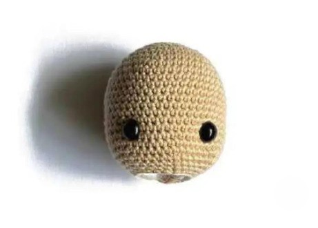 1) Insert the body to the head, place the head diagonally like so, then sew them in place using the head’s tail.