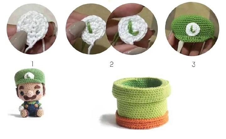 For Luigi’s pattern, follow Mario’s pattern, but:
