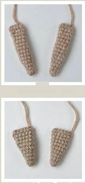 7 ch, start in the second chain from the hook: 1 inc, 4 sc, 3 sc in the last st, turn and continue on the other side of the chain, 5 sc (14)