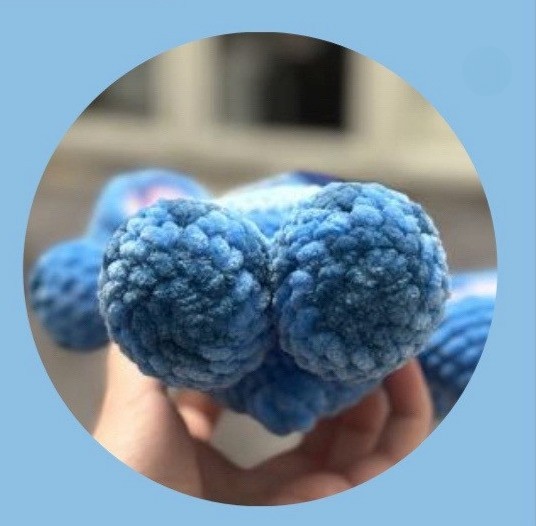R1 In Blue ch9, turn your work and place 8sc down the chain. Then working in the back side of the chains place 8sc for a total of 16sc in round 1.